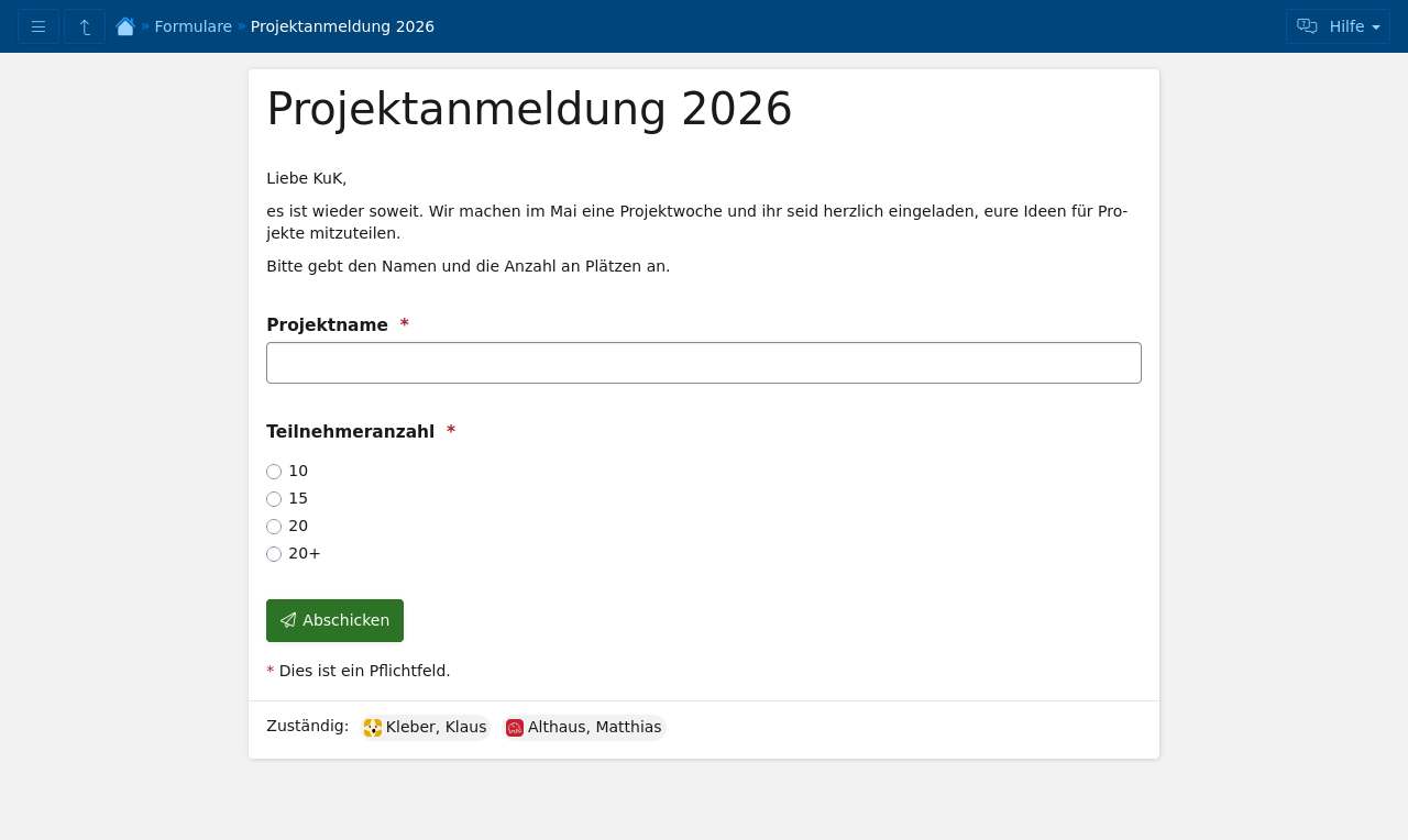 - Formulare für externe Teilnehmer ohne IServ-Account (Anmeldungen, Datenschutzabfragen etc.)